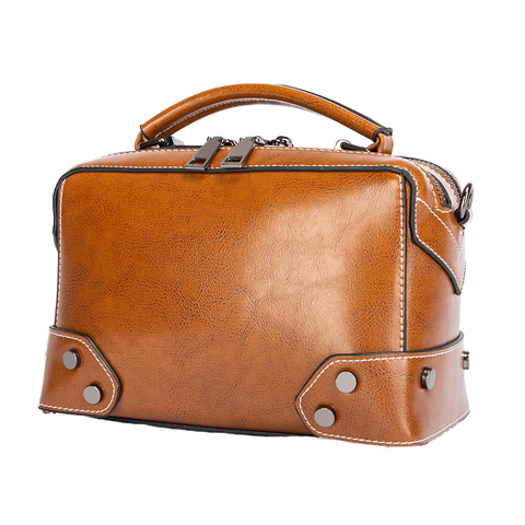 Gran oferta, bolso de mano Vintage de cuero genuino para mujer con cadena, correa para el hombro, forro de algodón de gama alta para uso diario