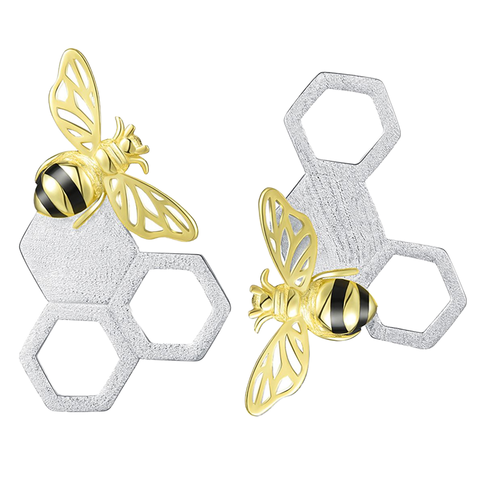 Lotus eğlenceli 18K altın kaplama 925 ayar gümüş arı tarak saplama küpe güzel takı kadın nişan için